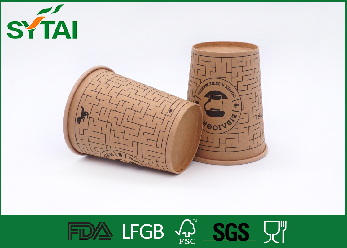 Biodegradable Kraft Hot Cups , Custom Printed Brown Paper Coffee Cups Single Wall